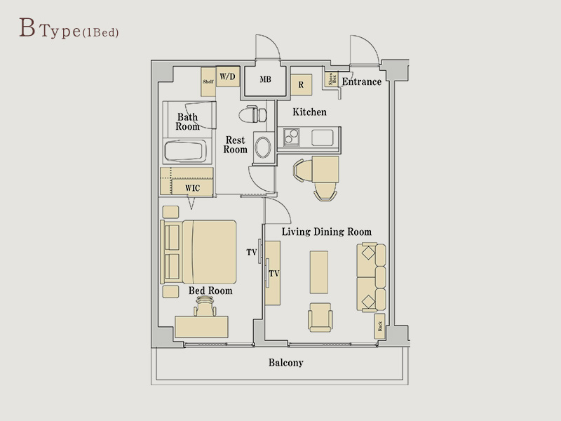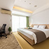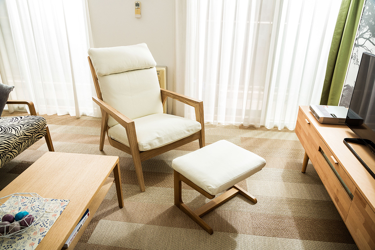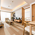 Kick back and relax on the reclining armchair. In addition to a dining table and a sofa,this room is furnished with a king-sized bed (width: 2,200mm.)